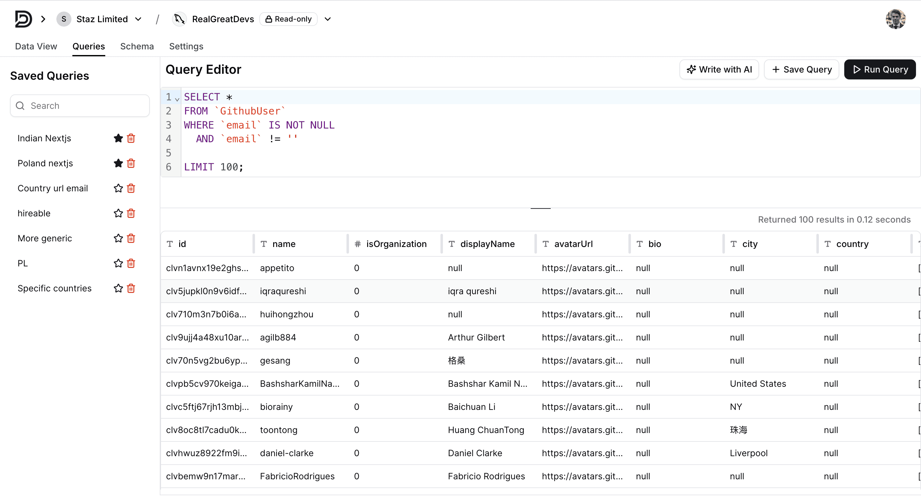 Saved Queries & Collaboration: Save frequently used queries, share them with teammates, and collaborate in real-time (coming soon) on shared data projects.