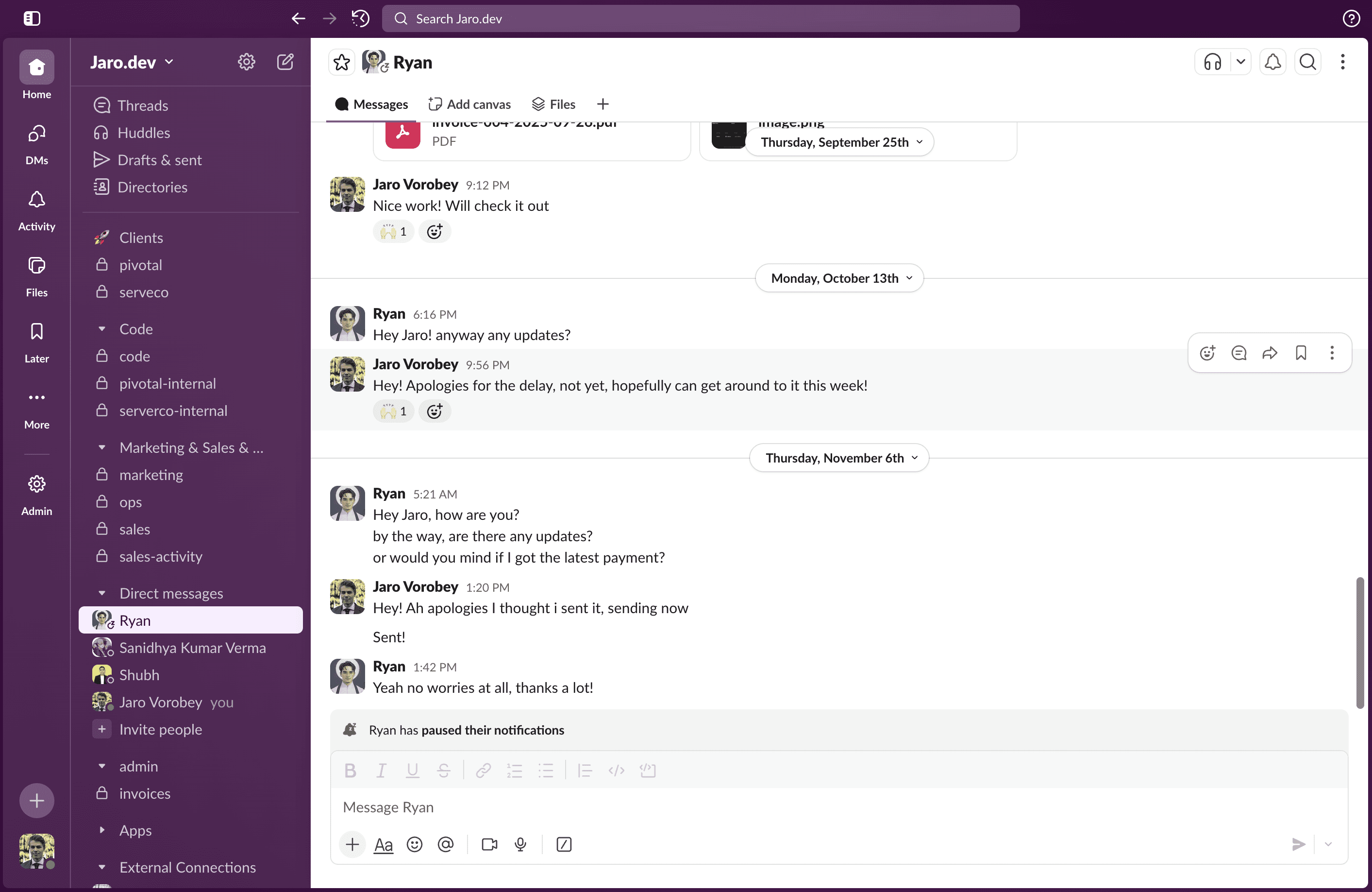 Pixel-Perfect Slack Replica: Delivered a front-end indistinguishable from Slack, matching every interaction, animation, and layout detail.