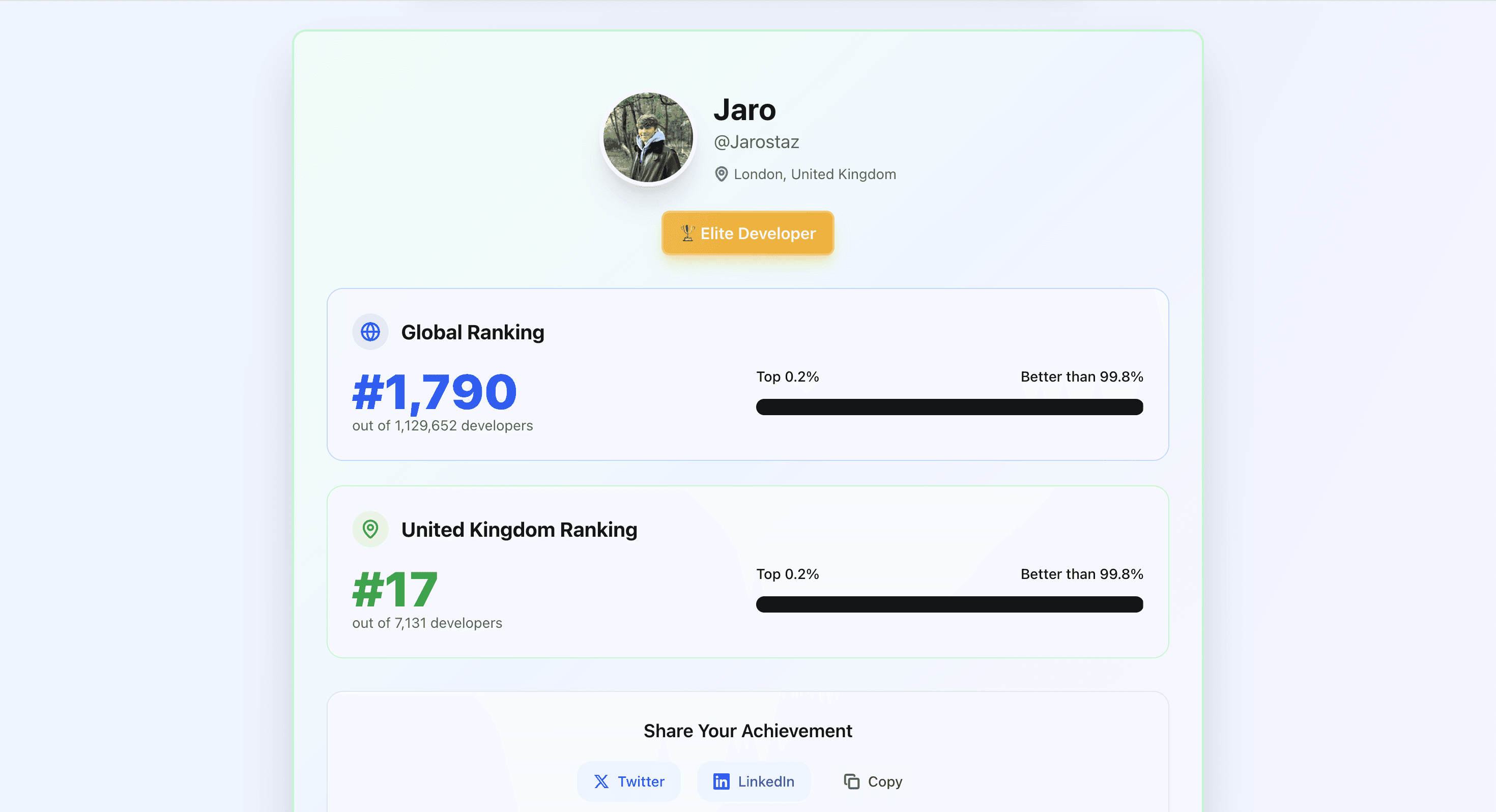 Scraped 7,000,000+ Software Developer Profiles, Created Global Engineer Ranking