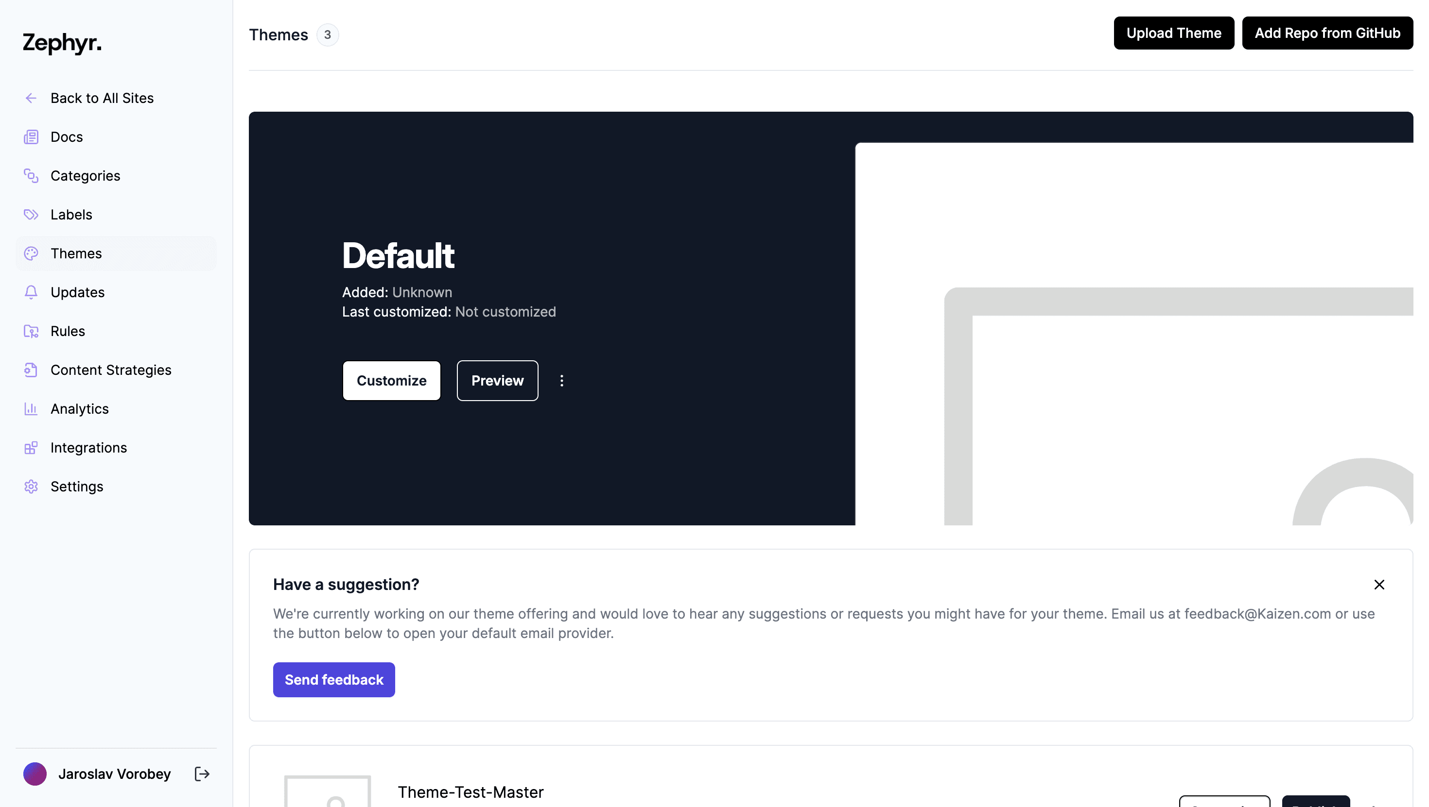 Github Integration: Added support for creating, uploading, and managing themes through GitHub repositories.
